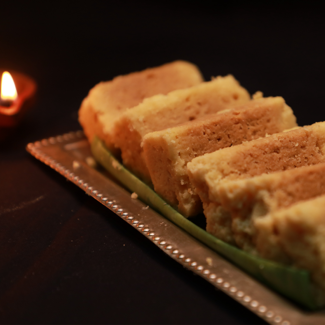 Mysore Pak is a rich South Indian sweet made from roasted gram flour, ghee, and sugar, known for its soft, melt-in-the-mouth texture and irresistible aroma. Perfectly balanced in sweetness and richness, it is a festive favorite and a timeless indulgence.